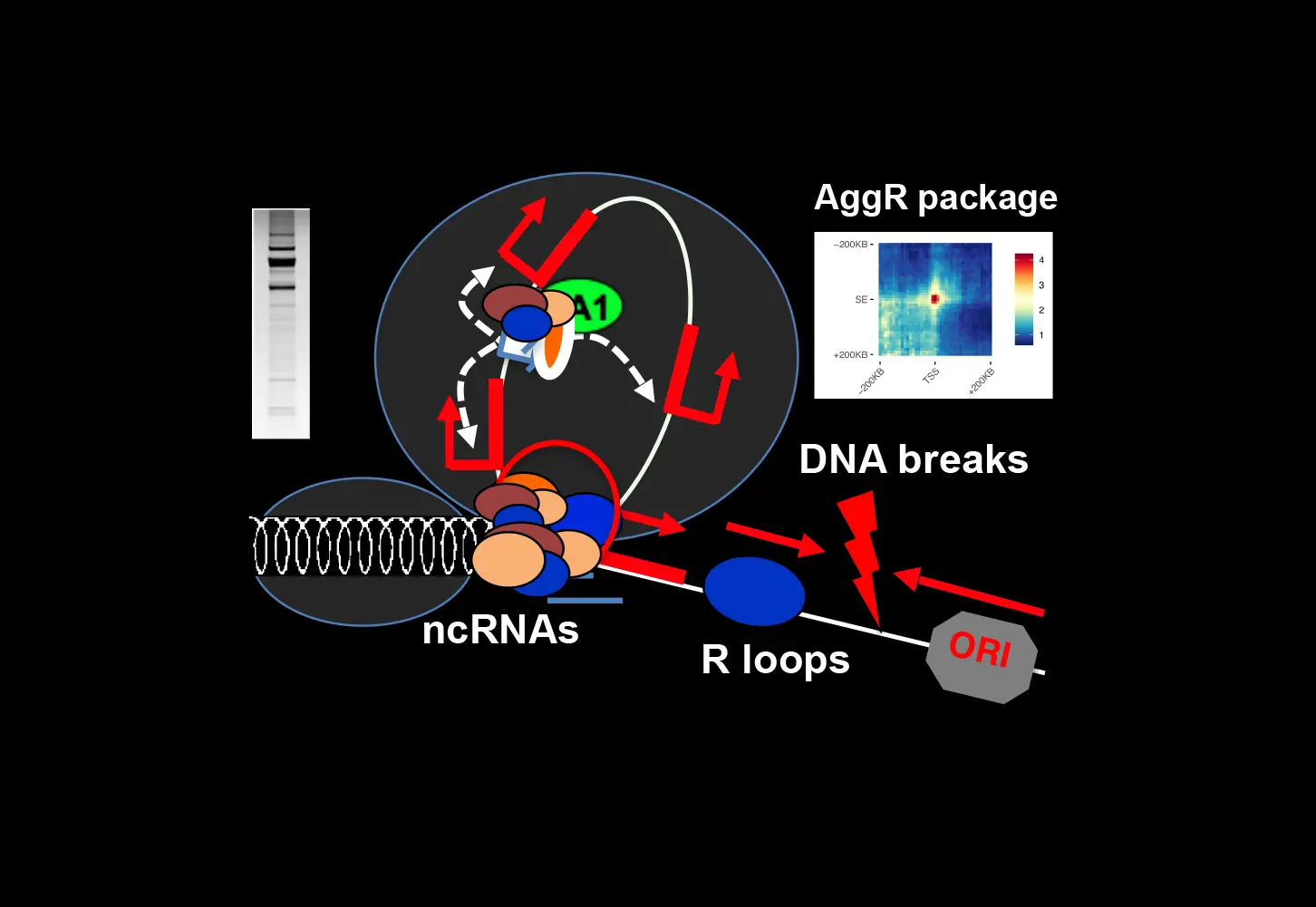 En parallèle, nous développons des approches de biologie informatique, notamment la méthode intitulée Agrégation, qui permet de détecter les contacts à longue portée même s’ils sont moins stables que ceux formés aux frontières du TAD, par exemple sous forme de boucles d’isolateur, et nous avons maintenant mis à disposition un package de ressources (Bioconductor package : HiCAggR). L’agrégation permet de sonder les contacts à longue portée à très haute résolution (< 1 kb) et donc d’identifier les cibles génétiques appropriées.