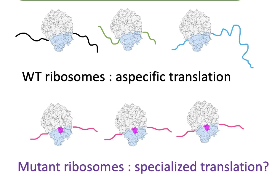 On a longtemps pensé que pour toutes les cellules d’un même organisme, les ribosomes fonctionnaient tous de la même façon et avaient une composition et des capacités de production strictement identiques. Cependant, cette vision quelque peu monolithique a évolué, et il est désormais clairement établi que l’hétérogénéité de la composition des ribosomes permet la régulation différentielle de la traduction de certains ARNm, ce qui peut, à son tour, influencer directement le destin de la cellule. Ces dernières années, des mutations somatiques de protéines ribosomiques ont été clairement identifiées comme des facteurs oncogéniques. Cela montre l’importance de caractériser en détail la production et l’activité des particules ribosomiques, dans des conditions normales et pathologiques, afin de comprendre l’impact des ribosomes dans les mécanismes cancéreux.