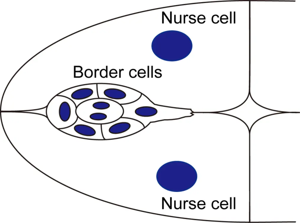 La migration cellulaire collective au cours du développement et des processus pathologiques se produit souvent dans les tissus riches en cellules, composés non seulement de matrices mais également de cellules substrats. Les caractéristiques et le rôle des cellules substrats sont mal compris par rapport à ceux de la matrice. L’équipe utilise la migration des cellules de bordure de l’ovaire de drosophile comme modèle in vivo pour comprendre comment les cellules collectives interagissent et communiquent avec les cellules substrats pour traverser un tissu riche en cellules.