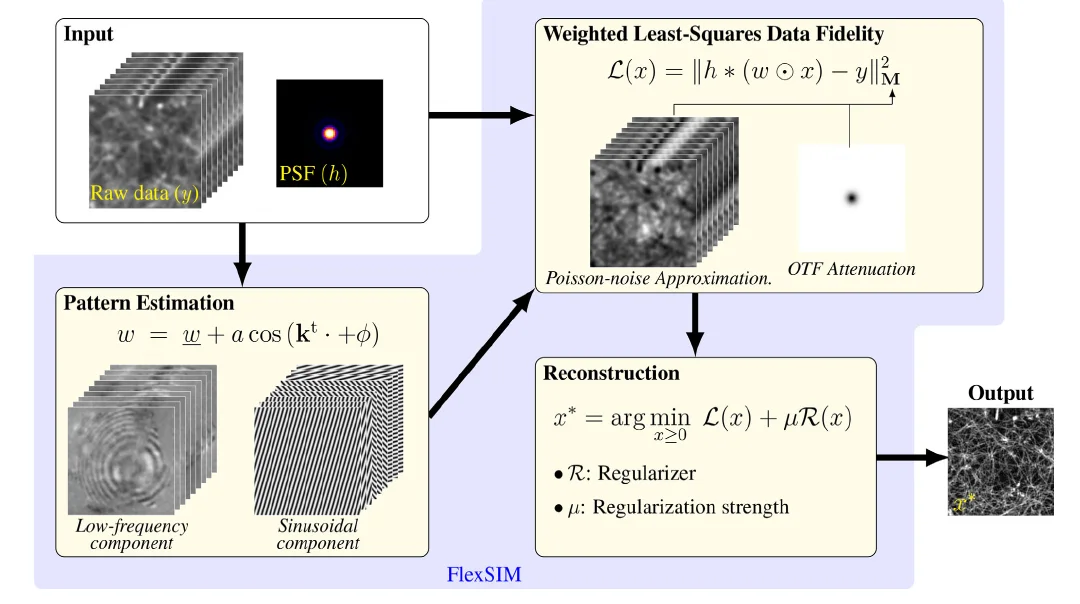 – Surpassing Light Inhomogeneities in Structured-Illumination Microscopy with FlexSIM. E. Soubies, A. Nogueron, F. Pelletier, T. Mangeat, C. Leterrier, M. Unser, and D. Sage. Journal of Microscopy, (2024)