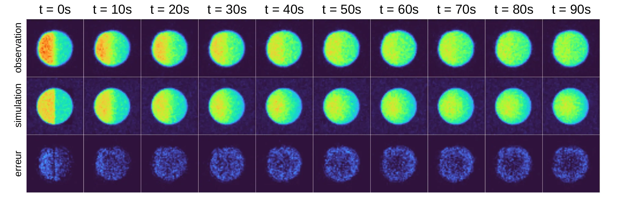 Dans ce projet commun avec l’équipe de Fabian Erdel, nous visons à mieux comprendre comment les condensats se forment au sein des cellules, grâce aux techniques d’imagerie FRAP. Après un photoblanchiment, les molécules fluorescentes se déplacent et récupèrent progressivement un état stationnaire. En analysant les séquences d’images pendant la récupération, nous pouvons évaluer des paramètres biophysiques tels que la perméabilité de la membrane, les coefficients de diffusion à l’intérieur et à l’extérieur du condensat, la probabilité de se lier à d’autres éléments, etc. Cela nécessite une modélisation physique précise, des algorithmes numériques et une certification des solutions.