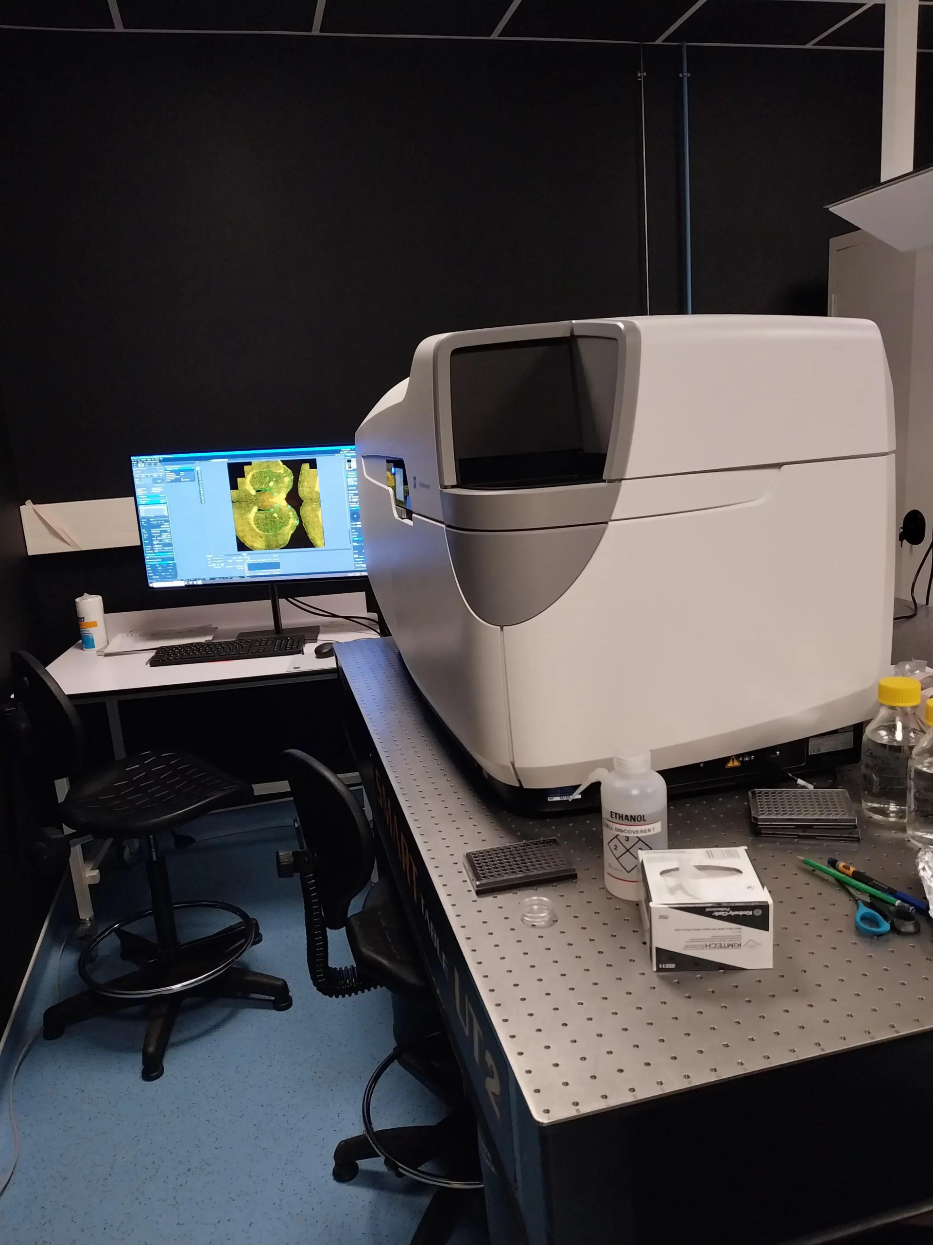 Un poste d’analyse, hors ligne, dédié, équipé des logiciels Arivis et Zen Desk est disponible pour le traitement des données.