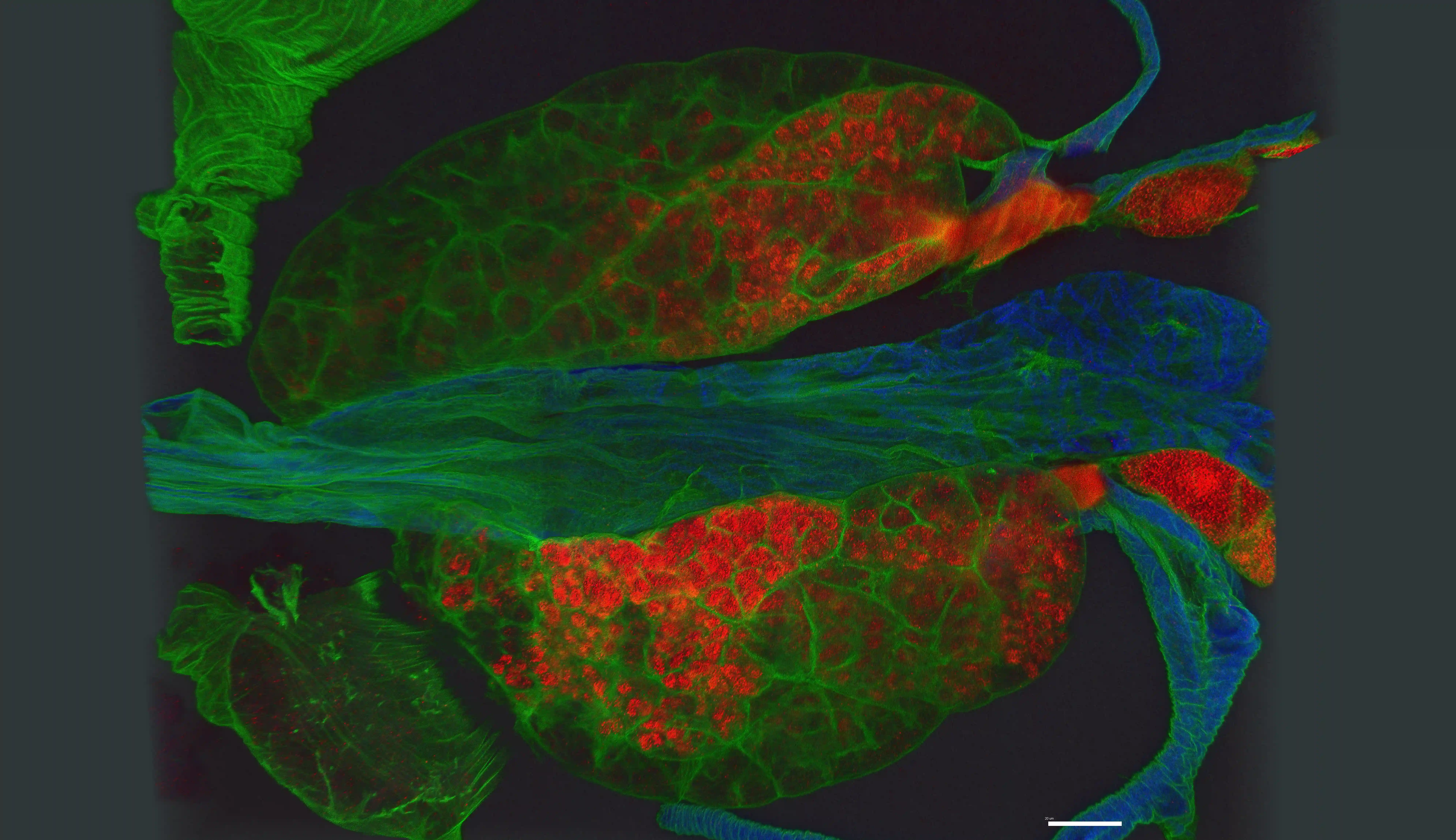 RIM2 : dédié aux modèles 3D et aux échantillons épais, il est équipé de 2 caméras Orca-Quest et Kinetix rétro-éclairées qui offrent un très grand champ de vision, un rapport signal/ratio élevé, une efficacité quantique de 96% et une vitesse extrême. La platine ASI, conçue pour la microscopie à super résolution, permet une mise au point hautement répétable et offre une course piézoélectrique de 500µm. Le système a aussi un système 3D d’imagerie par « remote focusing ».
