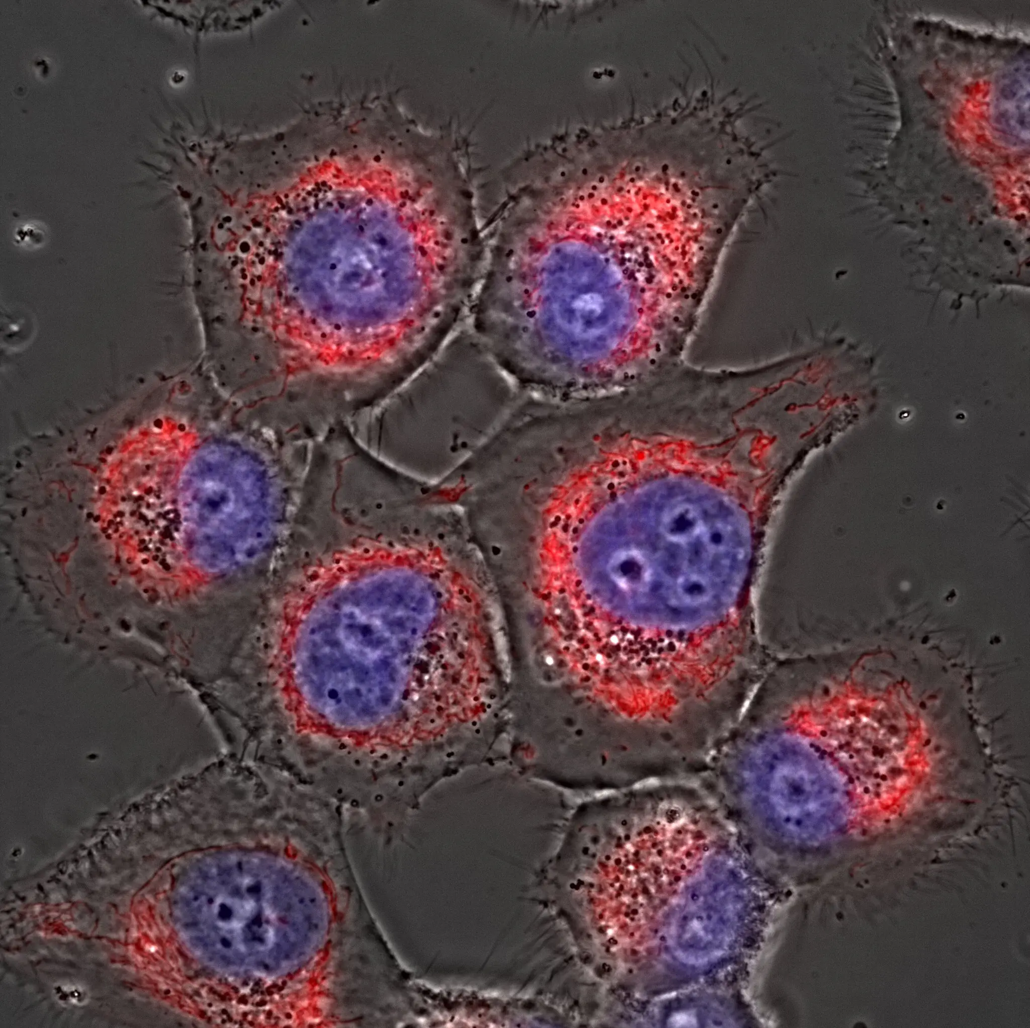 Spécifiquement dédié à la vidéo-microscopie, ce microscope est équipé d’une caméra Hamamatsu OrcaFlashV2, d’une source d’excitation Lumencor® 7 couleurs, de miroirs dichroïques multi bandes, et d’une roue à filtres externe permettant des acquisitions multi-couleurs rapides des fluorophores tels que DAPI, CFP, YFP, GFP, mCherry, Cy3 et Cy5. La présence d’une chambre thermorégulée et le système PFS de maintien de focus permet d’imager des échantillons vivants au cours du temps.