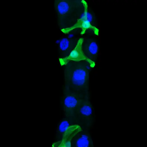 Spécifiquement dédié à l’acquisition d’échantillons 3D, les 2 systèmes Leica SP8 (un statif droit et un inversé) sont équipés de 2 photomultiplicateurs et d’un détecteur hybride de haute sensibilité.
